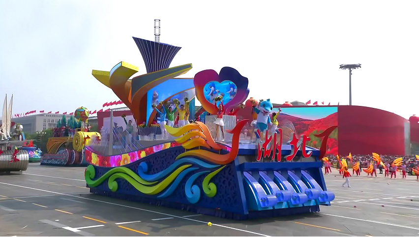 “光耀湖北”彩車是慶祝中華人民共和國(guó)成立70周年獻(xiàn)禮